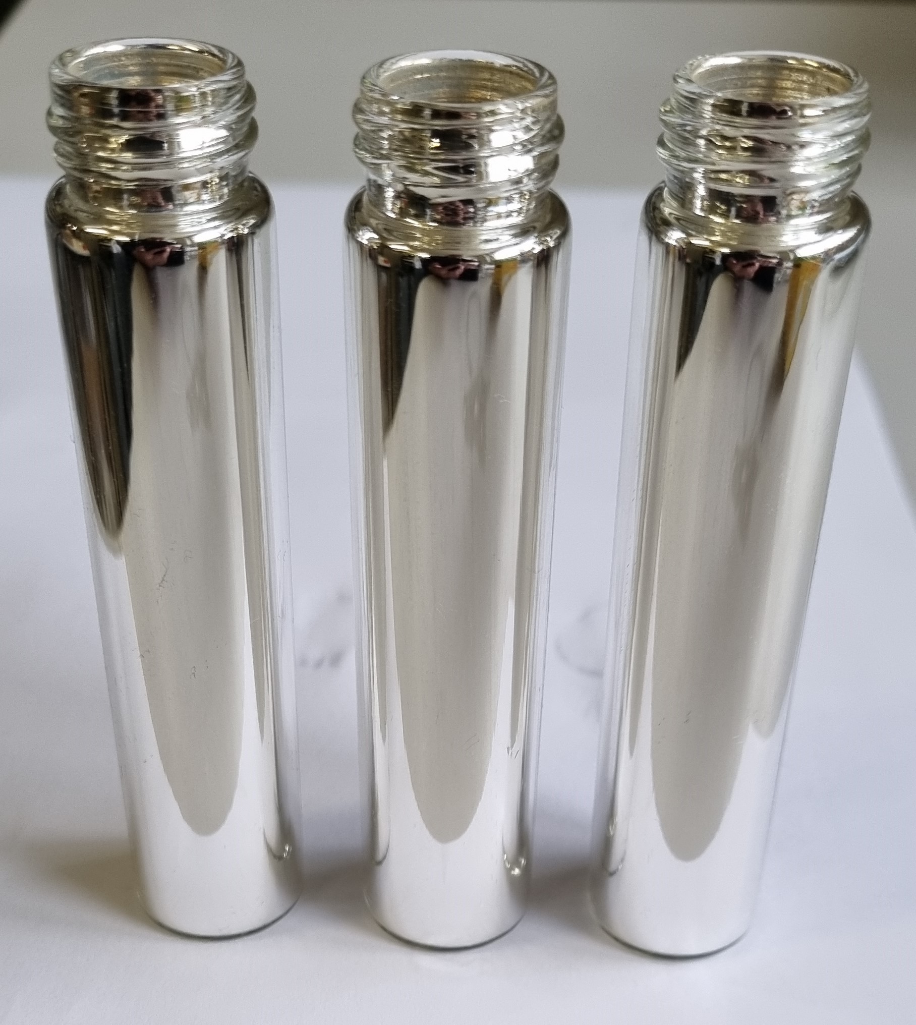 Das Klassenset erlaubt es 8x25ml Glasröhrchen zu versilbern. Die Verspiegelung eines Glasgefässes ist ein eindrückliches Experiment. Auf der Reduktion von Silberionen mit einem Aldehyd beruht auch die Tollensprobe.